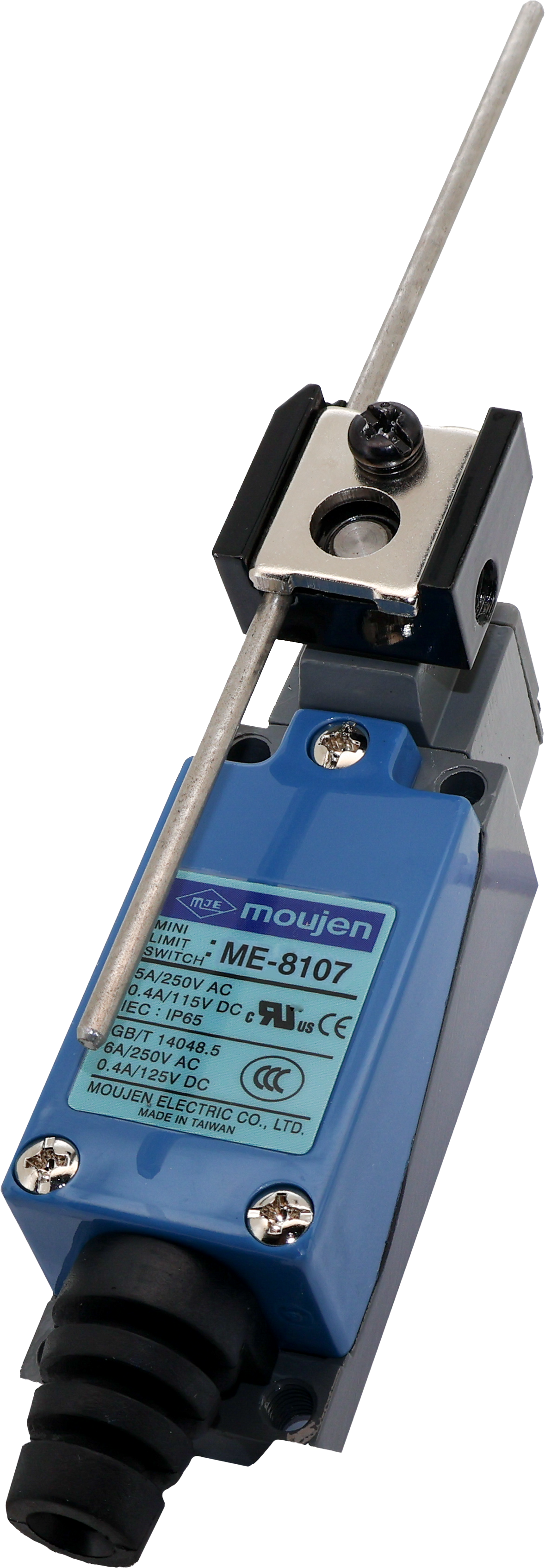 The ME-Series are a series of limit switches with a plastic cover and an aluminum bottom housing. All switches in the ME-Series are dust, water and oil resistant. The switches have strain relief for 6 to 7mm cable. The ME limit switches are available in other options including: